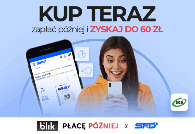 - Zrób zakupy sklepie SFD.pl za minimum 65 zł i skorzystaj z opcji płatności BLIK Płacę Później.